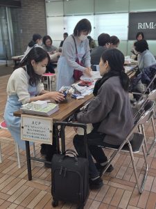 血圧、握力、体脂肪測定を行いました。測定後、ACPについて興味を持っていただいた方にはパンフレットを渡しながら説明を行いました。