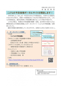 東京都は、年齢別の予防接種の種類・役割、区市町村で受けられる費用助成などの情報を掲載したポータルサイト「こどもの予防接種」を開設しました。