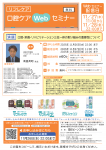 口腔ケアWebセミナー 口腔・栄養・リハビリテーション三位一体の取り組みの重要性について