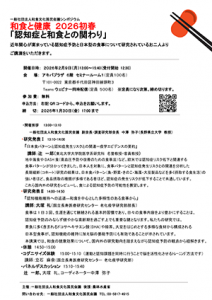 近年関心が高まっている認知症予防と日本型の食事について研究されているお二人よりご講演をいただきます。