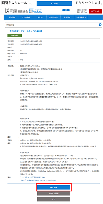 1 画面をスクロールし、[申し込み]をクリック