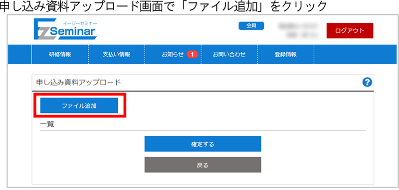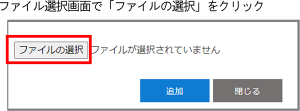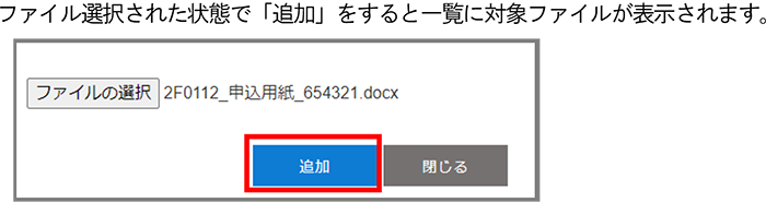 3 申し込み資料アップロード画面で[ファイル追加]をクリック