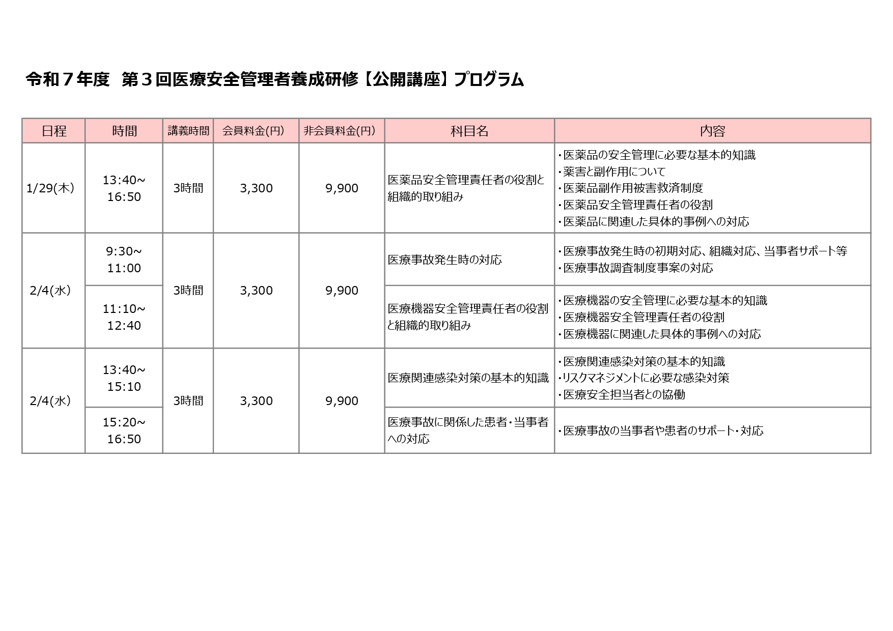 令和7年度 【公開講座】医療安全管理者養成研修 第3回 プログラムはこちら