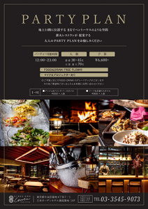 地上14階に位置する薪火レストランが提案する、大人のPARTY PLANをお愉しみください。